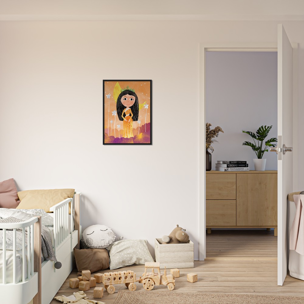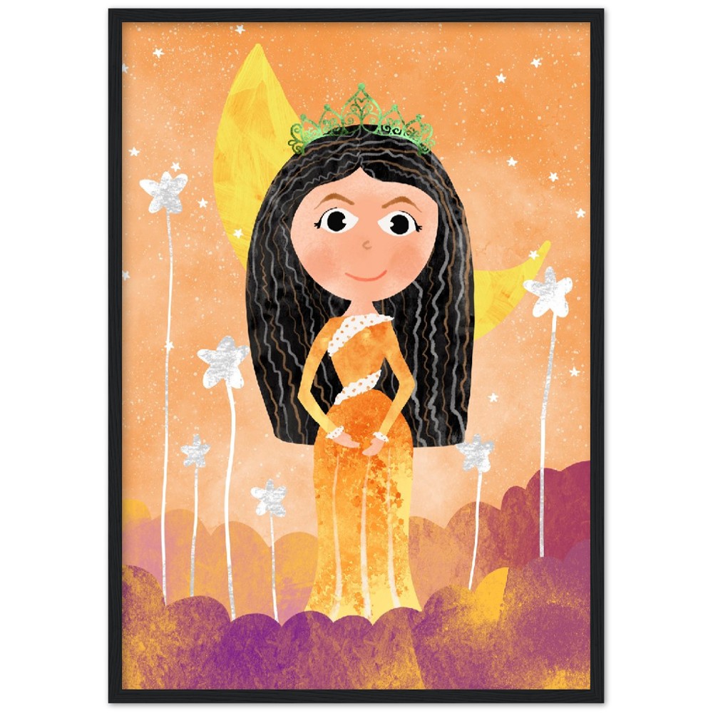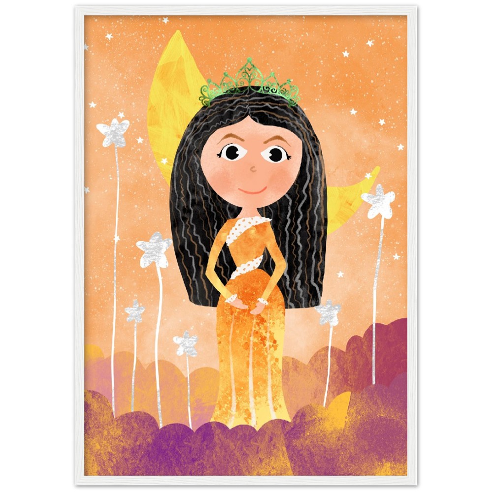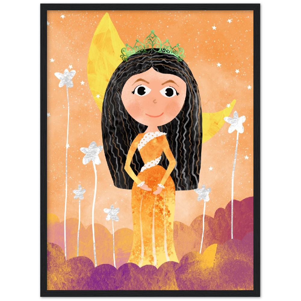 Cute Princess On Golden Clouds With Moon Wall Poster