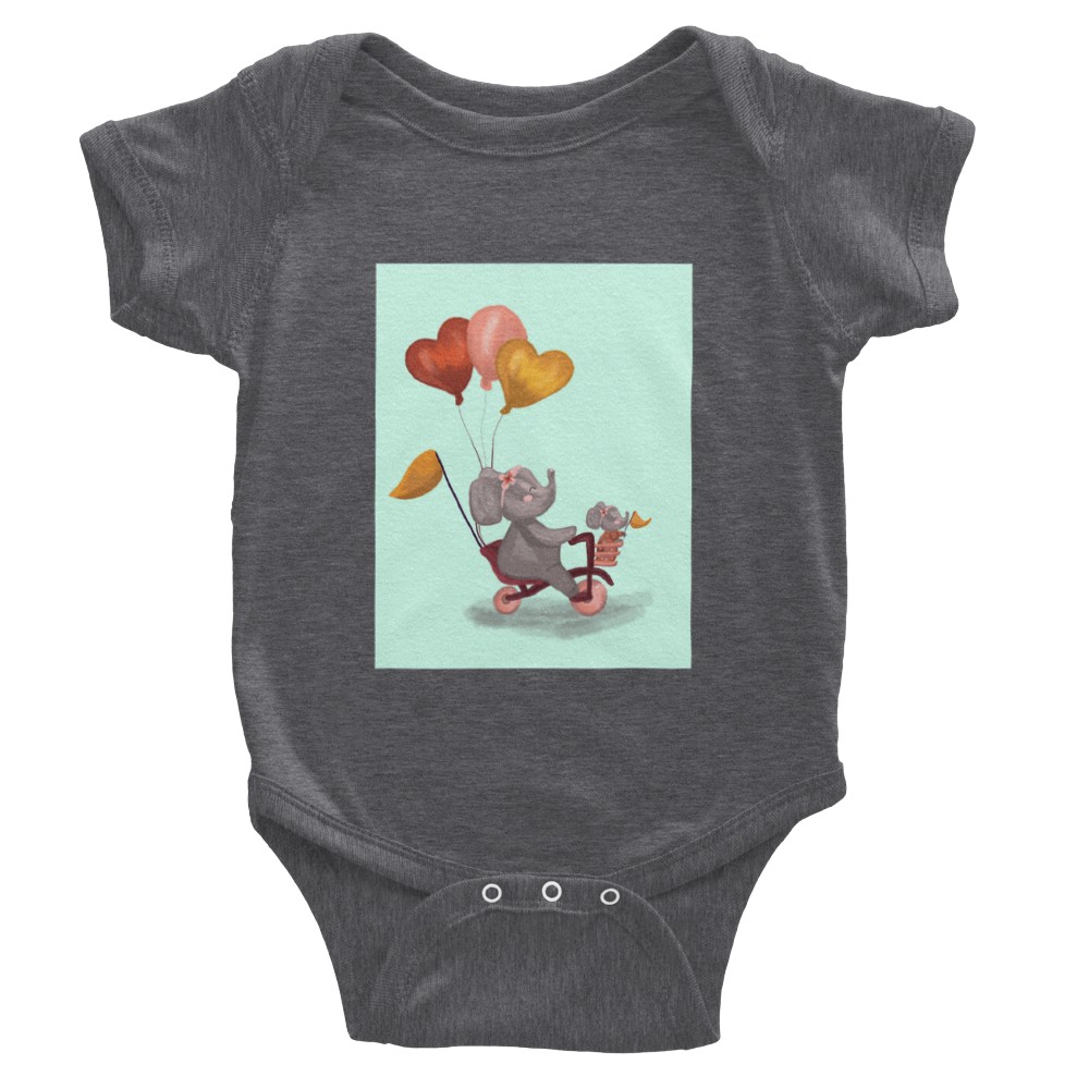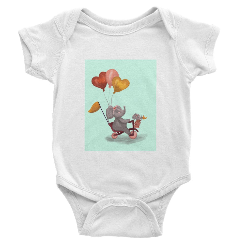 Onesies With Cute Elephant Mother Riding a Bicycle with Daughter and Flag on her Hand