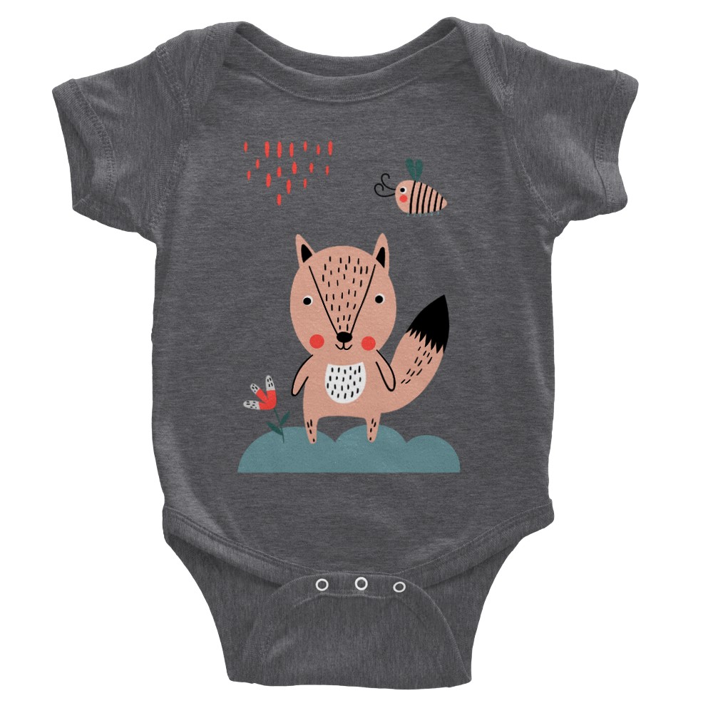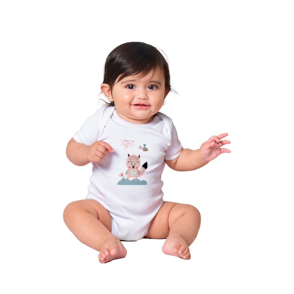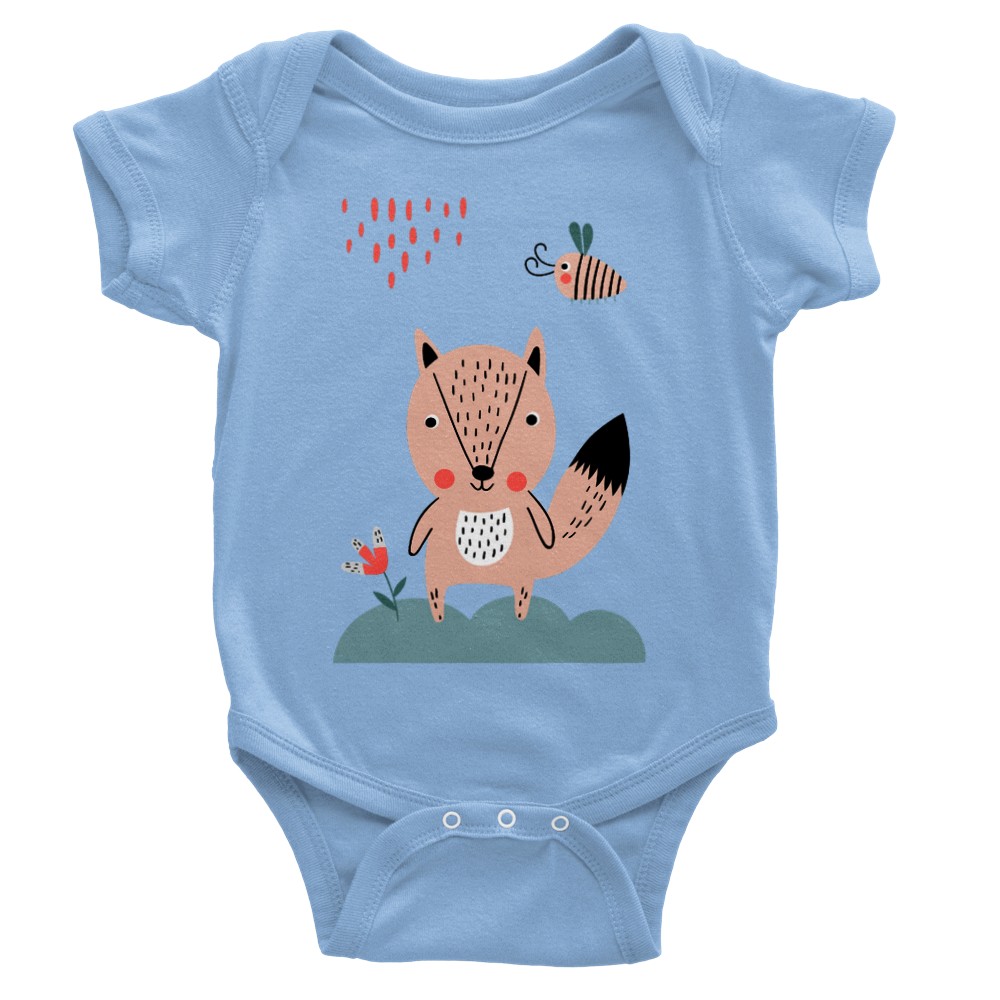 Onesies With Cute Fox Playing With a Bee With Cute Flowers