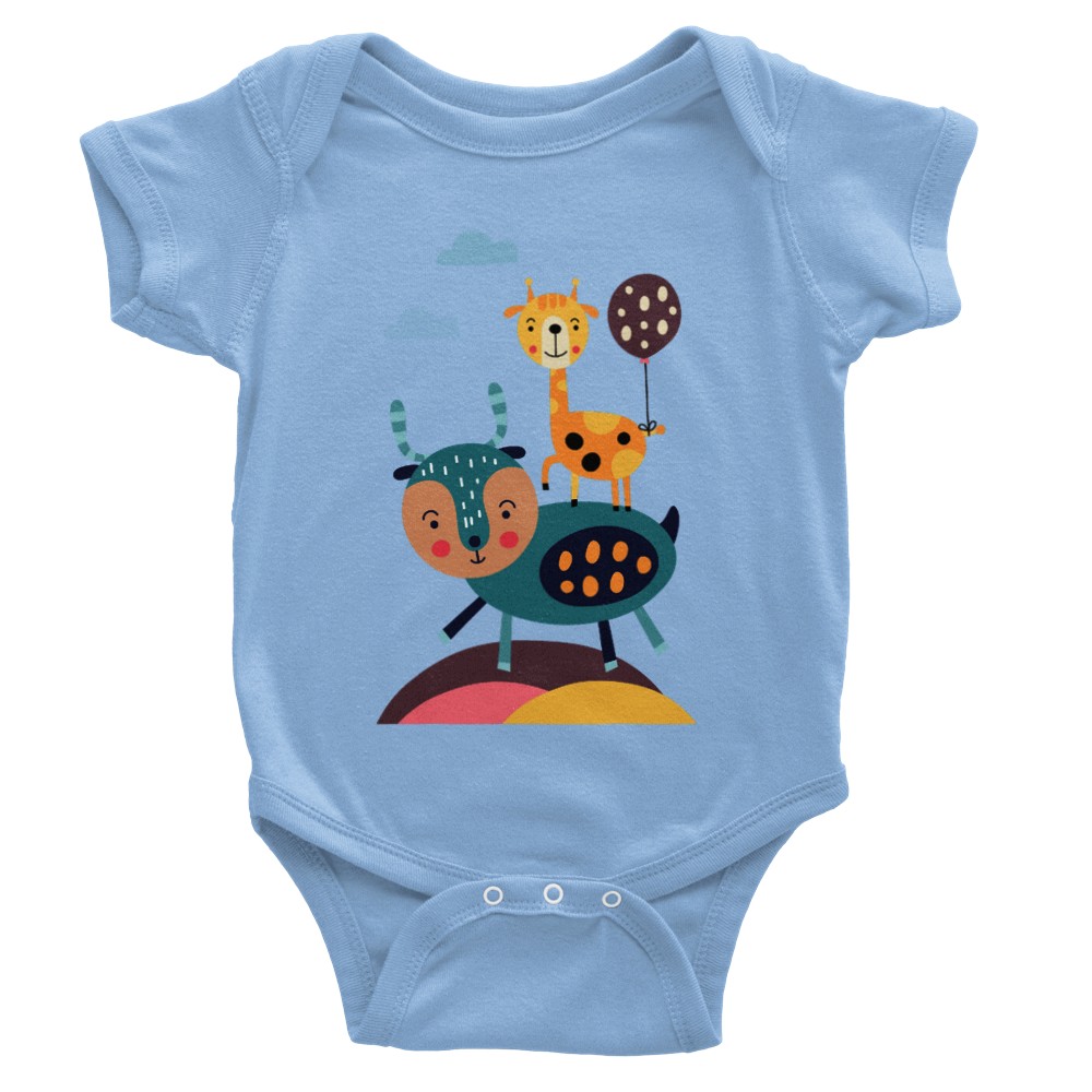 Onesies With Cute Rain deer And Giraffe Playing With A Balloon
