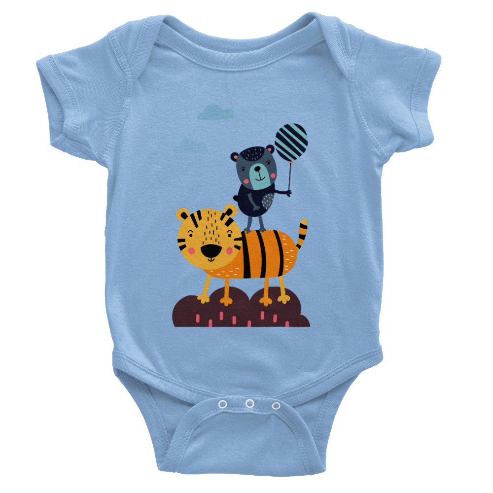 Onesies With Cute Tiger And Bear Playing With A Balloon