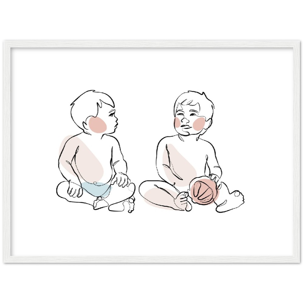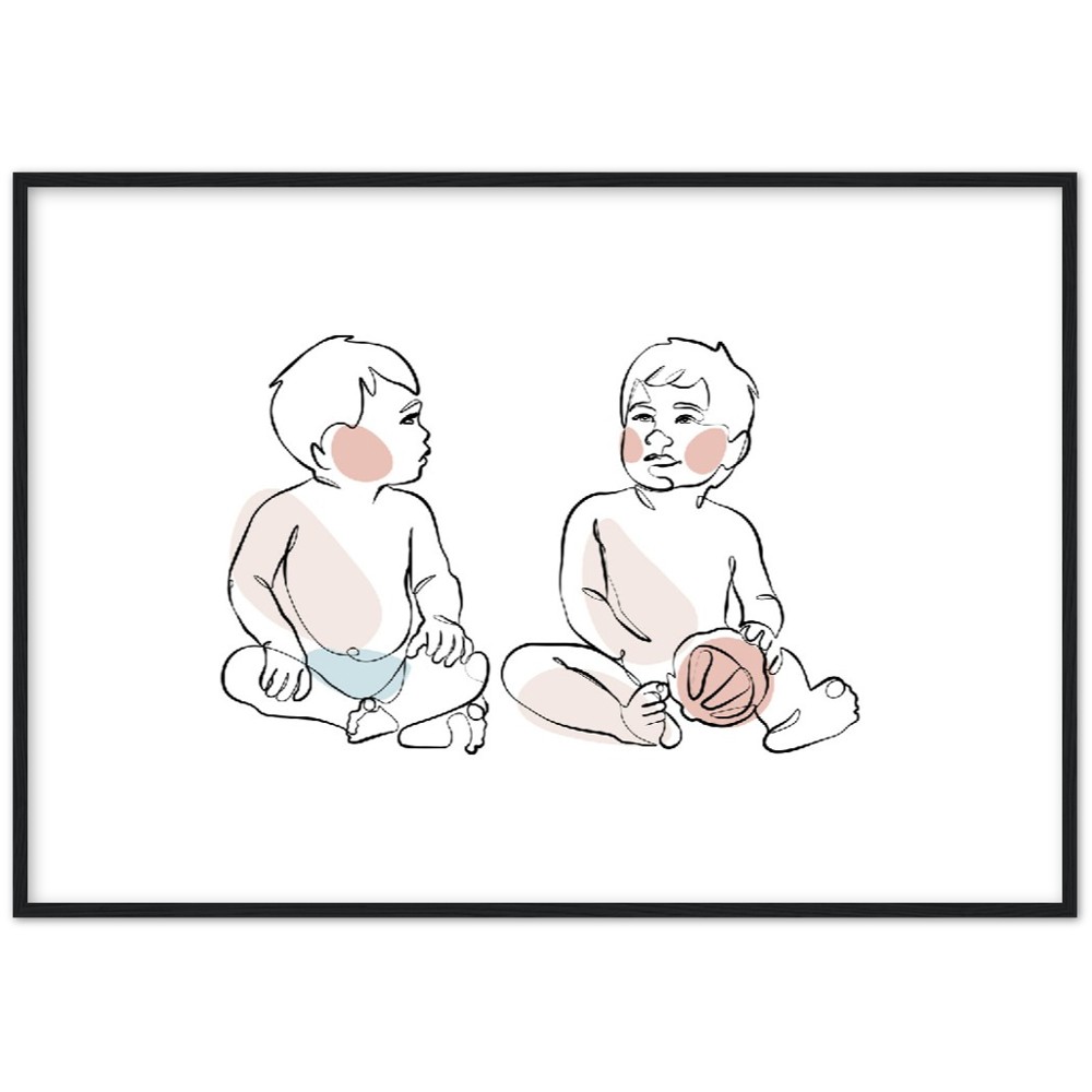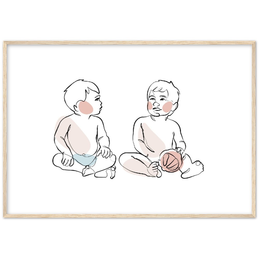 Siblings Posters, Two Siblings are Playing Ball, Family Art, Nursery Wall decor Line Art Poster