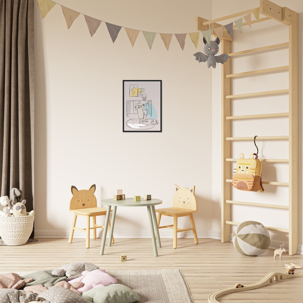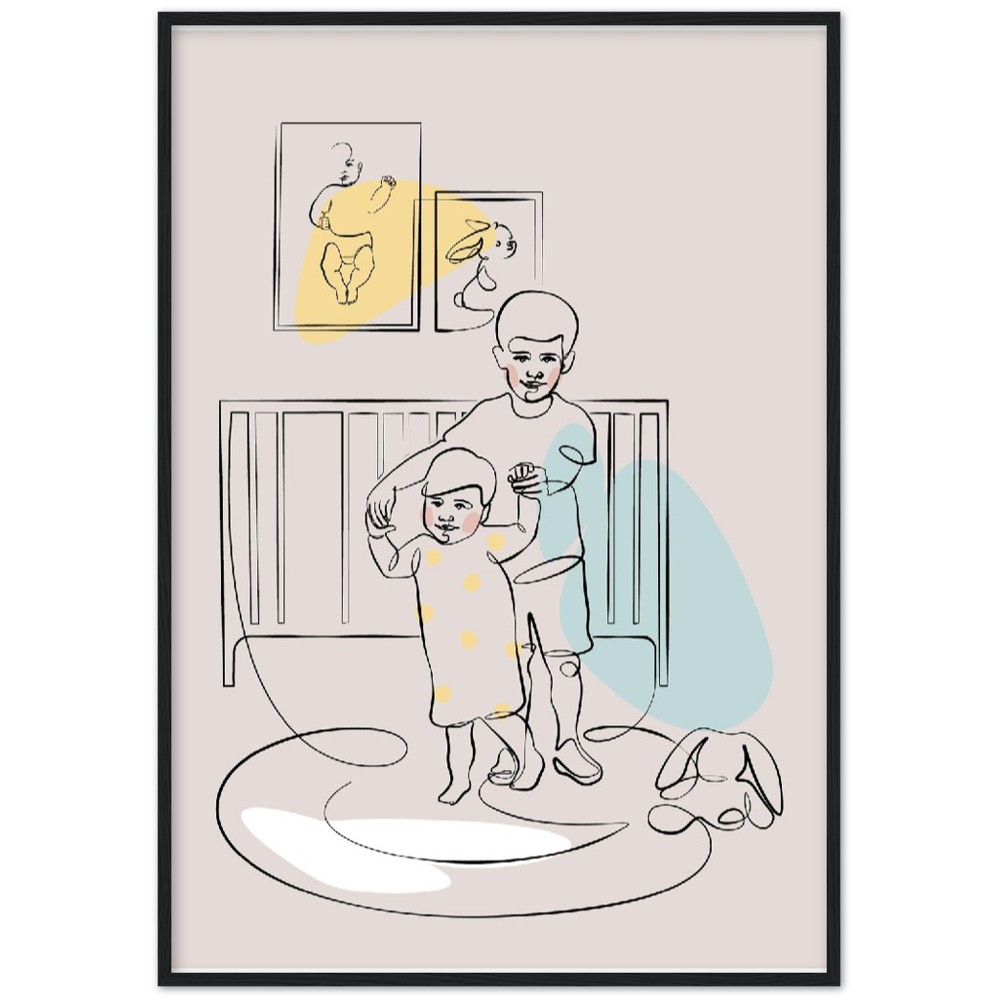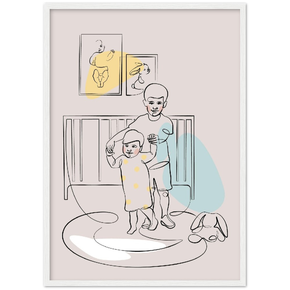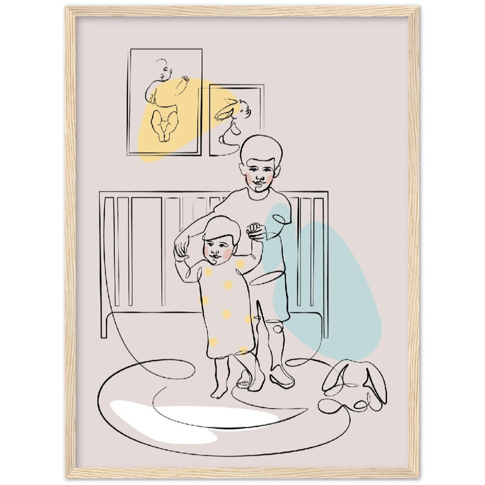 Siblings Wall Art, Big brother and Litle sister Playing Nursery Wall decor Line Art Poster