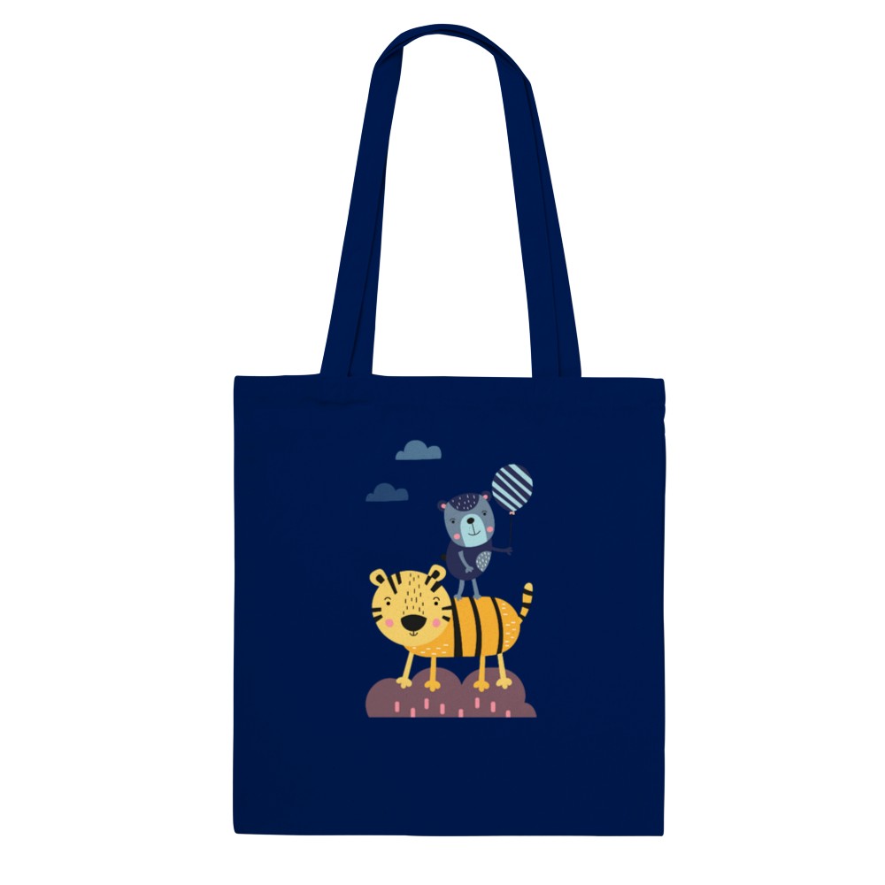 Tote Bag With Cute Tiger And Bear Playing With A Balloon