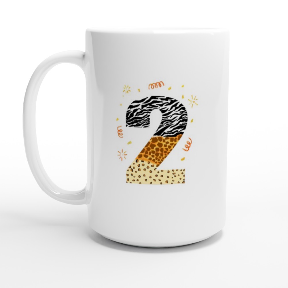 Two | 2nd second birthday Wild Animal skins | leopard, Zebra, Giraffe Mug